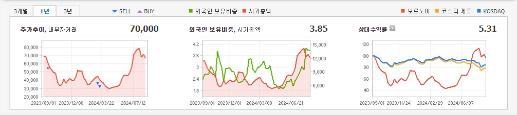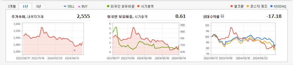 -기업 개요 및 평가- -[2024/06/03] 소재 사업의 매출액 급감 전기차와 가전제품 모터의 자석부품 원료로 사용되는 고순도 산화철을 생산함. 에너지환경분야의 플랜트와 소재사업 등도 영위하고 있음. 산회수 설비의 설계 및 시공, 운전능력을 모두 겸비하고 있는 세계 유일의 산화철 전문업체로서 고급산화철 세계시장 점유율 1위를 꾸준히 유지하고 있음. 중국의 TDG, 일본의 TDK 등 우량 고객사를 확보하고 있고, 우수한 품질의 제품을 안정적으로 공급함으로써, 업계 선두의 점유율을 유지하고 있음. 에너지환경 플랜트 사업의 매출이 늘었으나, 중탄산나트륨, Al탈산제 등 소재사업의 실적이 큰 폭으로 줄어들면서 2024년 1분기 전체 매출액은 전년동기 대비 34.1% 감소함. 환율 안정에 따른 원가율 개선과 인건비 등 판관비 절감으로 영업이익의 적자규모는 전년동기의 절반 수준으로 감소함. 전기차의 핵심부품 중 하나인 컨버터에 페라이트코어(전자석, 산화철70%)를 사용하는 신규시장이 급성장하고 있음.