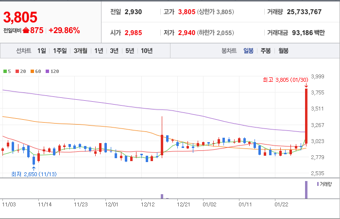 시총: 3,121억원, 거래량:2,806,288, 거래대금:89,655백만