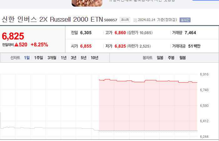 9. 신한 인버스 2X Russell 2000 ETN 등락률: +8.25%