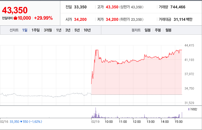 현재가: 43,350, 어제대비:+10,000