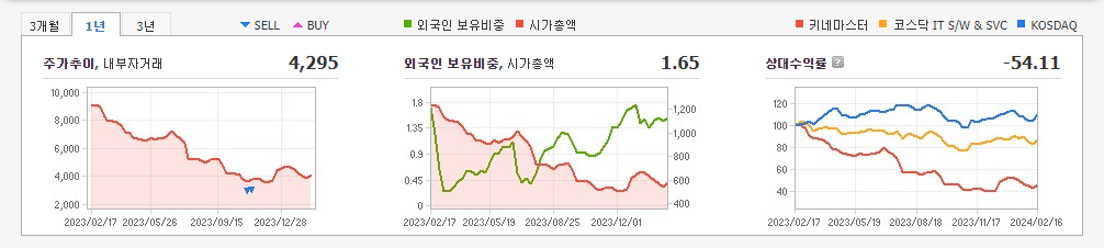 2023년 9월 전년동기 대비 연결기준 매출액은 10.1% 감소, 영업이익 흑자전환, 당기순이익 흑자전환. 키네마스터(KineMaster)는 2023년 9월말 기준 누적 6억 6천만이상의 다운로드를 돌파하였으며, 계속해서 가파른 다운로드 증가세를 보이고 있음. 동사는 미디어 플랫폼 4차 산업 시류에 따라 회사의 지속 경영과 성장을 도모하고자 키네마스터를 주력 사업으로 내세워 플랫폼화를 위한 투자를 지속 해 나갈 예정임.
