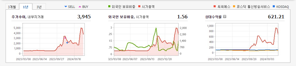 2023년 9월 전년동기 대비 연결기준 매출액은 19.5% 감소, 영업손실은 1,005.9% 증가, 당기순이익 적자전환. 화장품 사업부를 신규로 편입하였으며, 지난 분기 대비 매출이 약 50%가량 상승하였음. 하지만 지속적으로 영업손실이 발생되고 있음. 화장품을 사업부문으로 하는 씨에스에이코스믹의 지분을 취득하여 종속회사로 편입하였음. 이외에도 시장경쟁력 강화를 위해 셋톱박스 사업부를 양수할 예정임.