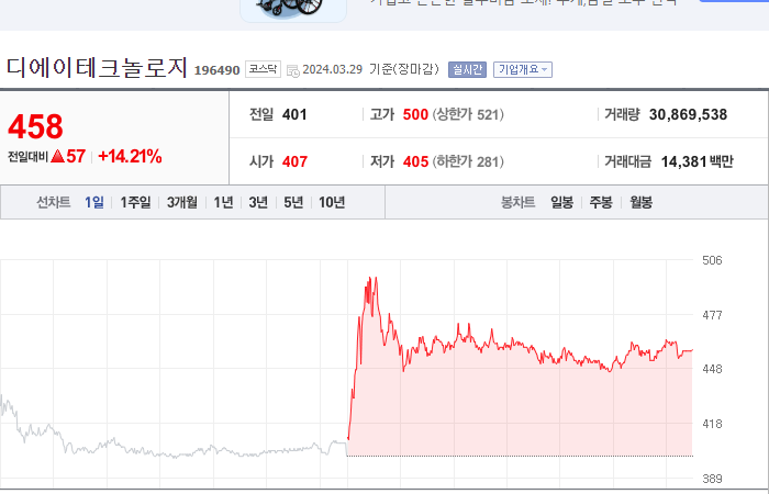 2024.03.26 16:43 / 거래소 “디에이테크놀로지, 주권 매매거래 정지 해제”-이데일리 / https://n.news.naver.com/mnews/article/018/0005700528