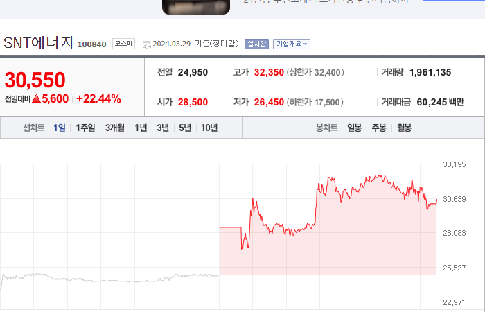 3. SNT에너지 등락률: +22.44%