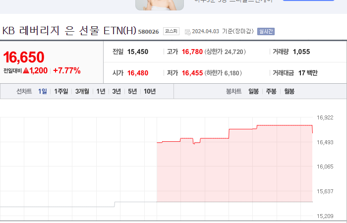 6. 한투 레버리지 은 선물 ETN 등락률: +8.30%