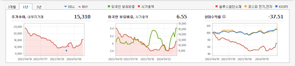 2023년 9월 전년동기 대비 연결기준 매출액은 38.9% 감소, 영업이익은 63.7% 감소, 당기순이익은 60.1% 감소. 국내와 유럽시장의 모듈 판매량 감소 및 판매가 하락으로 매출 감소함. 특히 유럽시장에서는 중국산 모듈 공급 과잉으로 인해 판매량이 감소하고 판매가가 하락함. 유럽 외 시장으로 지역을 확장시키며 신규고객 발굴과 마케팅 강화 노력 중임. 2023년 9월에 아프리카 앙골라 지역 신규 수주 공시함.
