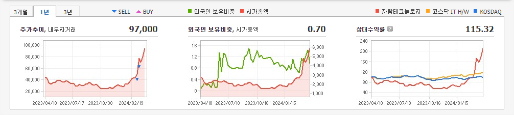 2024.04.05 10:40 / 한달 새 150% 뛴 자람테크놀로지…커지는 과열 '경고음'-뉴시스 / https://n.news.naver.com/mnews/article/003/0012473995