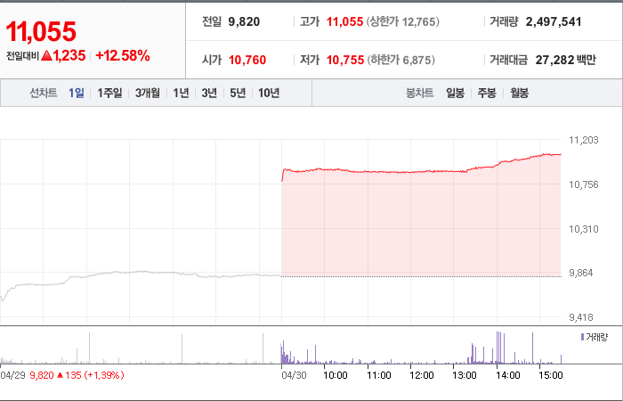 현재가: 11,055, 어제대비:+상승