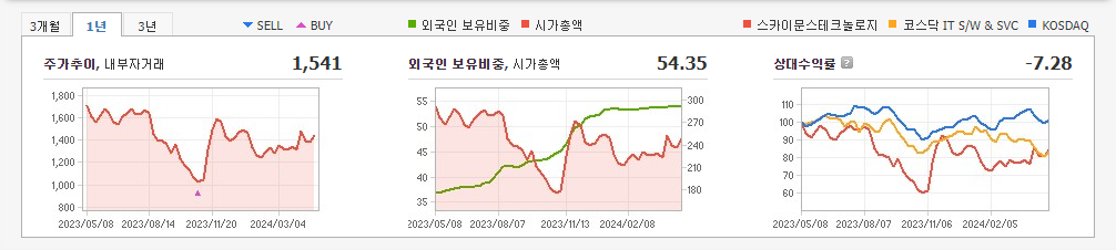 2023년 12월 전년동기 대비 연결기준 매출액은 45.7% 증가, 영업이익은 18.7% 증가, 당기순이익은 46.5% 감소. White-Box 테스팅 분야에서 강점을 보이고 있으며, 코드를 기반으로 전문 테스트 기술력으로 사업화에 성공함. 국내 원천 기술 보유, 최다 업무 경험 보유, 자체 개발 기술로 빠른 고객 서비스 대응의 차별성을 가지고 국내 시장 점유율 높임.