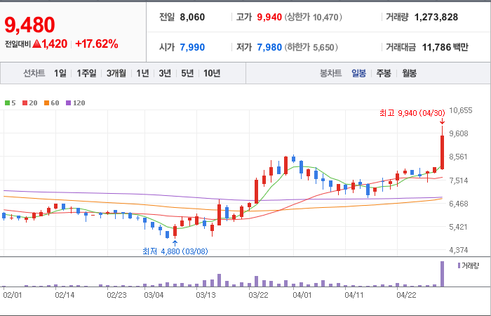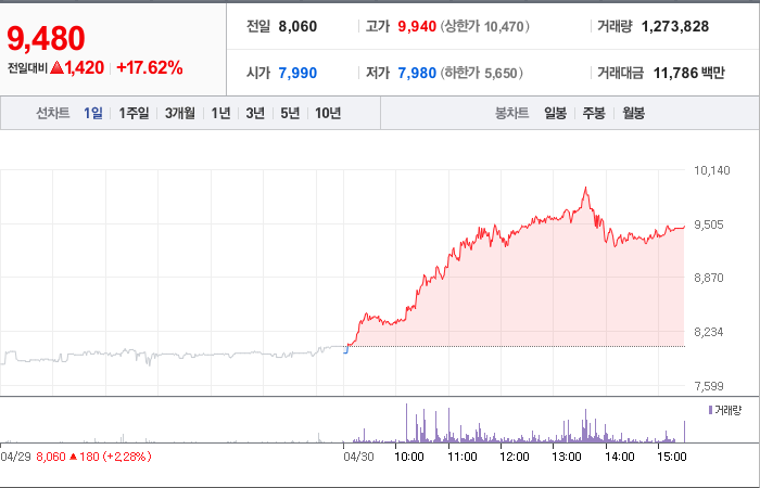 현재가: 9,480, 어제대비:+상승