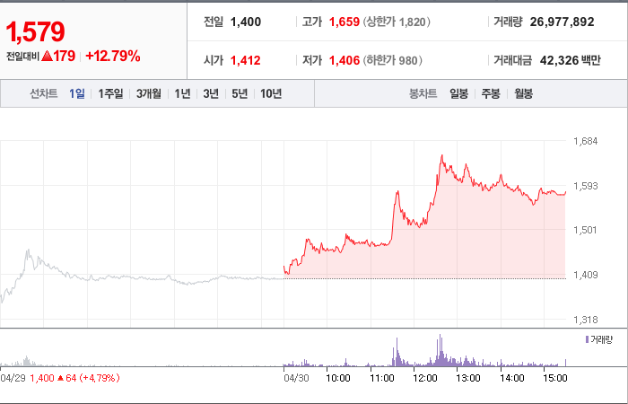 현재가: 1,579, 어제대비:+상승