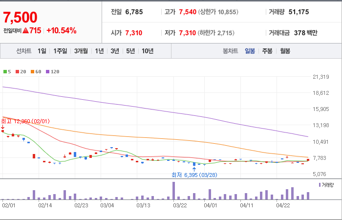 현재가: 7,500, 어제대비:+상승