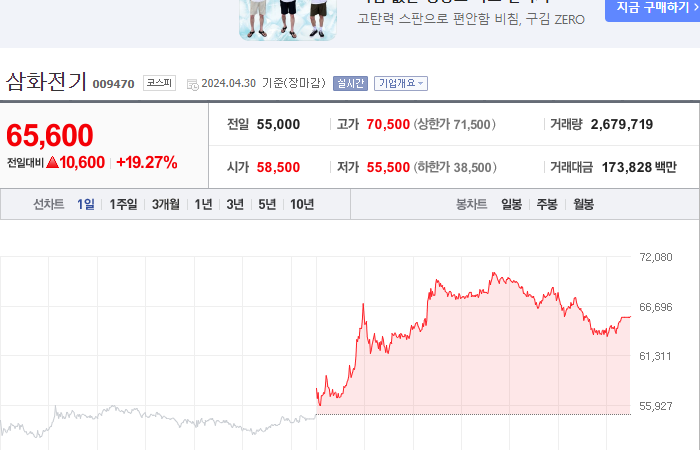 2024.04.30 13:59 / [특징주] 'AI 데이터센터 수혜' 삼화전기, 52주 최고가 새로썼다-서울경제 / https://n.news.naver.com/mnews/article/011/0004334993