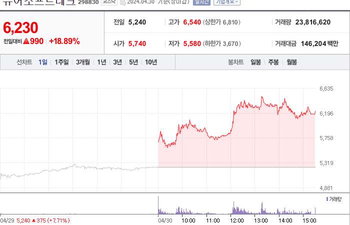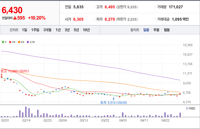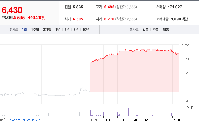 현재가: 6,430, 어제대비:+상승