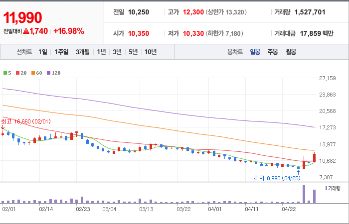현재가: 11,990, 어제대비:+상승