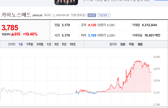 2024.04.25 16:37 / 카이노스메드, 파킨슨병 혁신신약 가치 뽐낼까…"뇌질환 모멘텀 기대"-머니투데이 / https://n.news.naver.com/mnews/article/008/0005030618