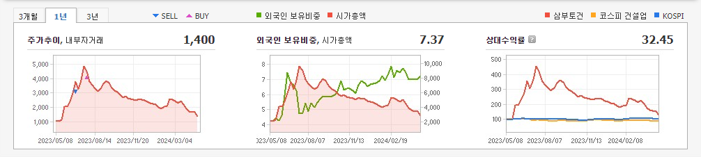 2024.04.23 04:02 / [마켓인]빚더미에 앉은 삼부토건…부채비율 400% 넘겼다-이데일리 / https://n.news.naver.com/mnews/article/018/0005721527