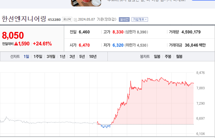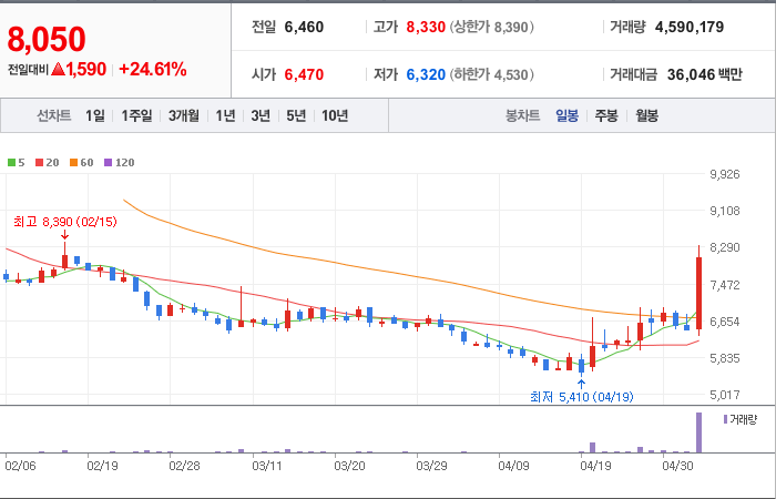 현재가: 8,050, 어제대비:+상승