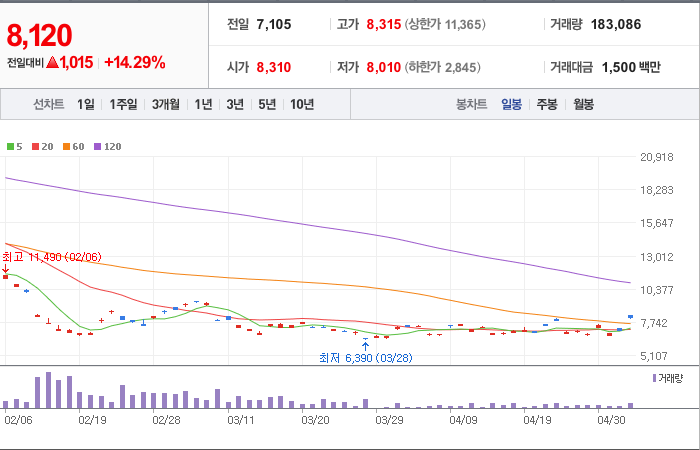 현재가: 8,120, 어제대비:+상승