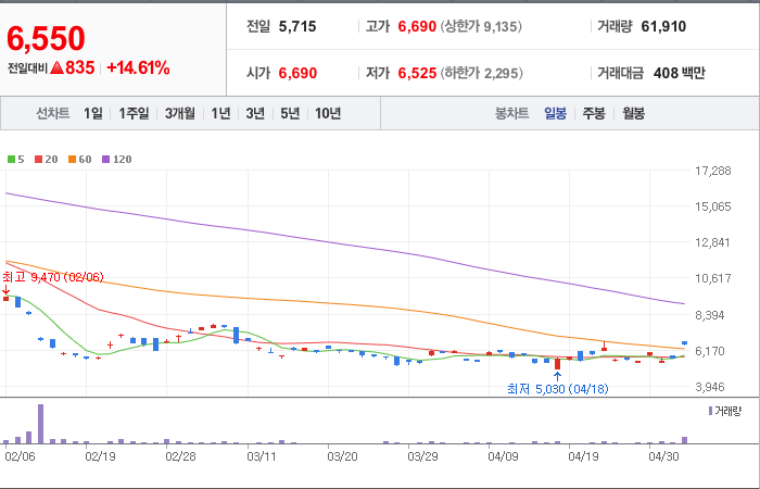 현재가: 6,550, 어제대비:+상승
