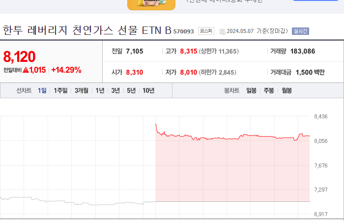 10. 한투 레버리지 천연가스 선물 ETN B 등락률: +14.29%