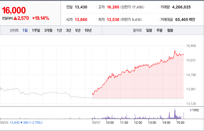 현재가: 16,000, 어제대비:+상승