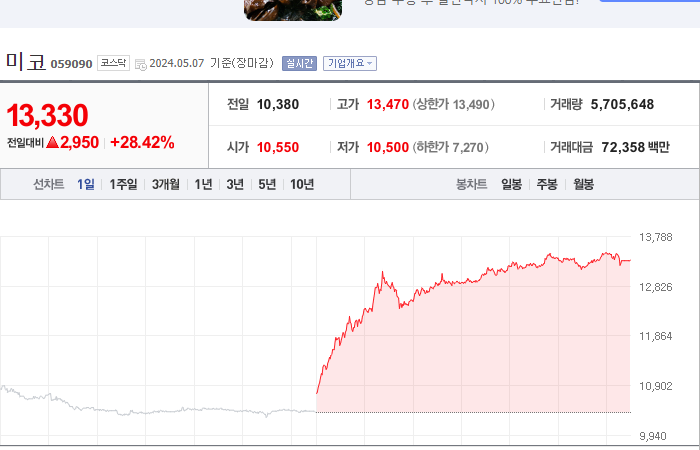 15. 미코 등락률: +28.42%