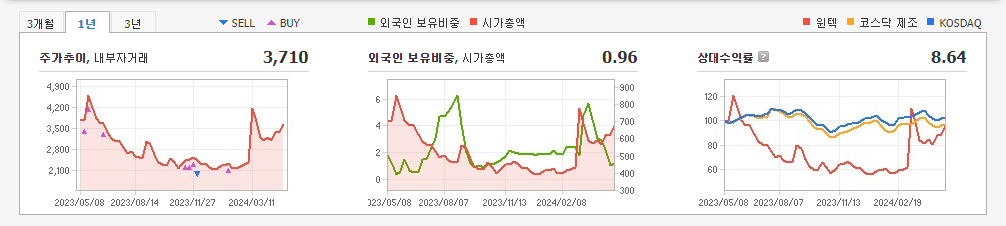 2023년 12월 전년동기 대비 별도기준 매출액은 15.3% 감소, 영업이익은 32.2% 증가, 당기순이익은 42% 감소. 매출이 줄었는데도 수익성은 개선됐음. 매출원가를 절감, 매출 감소 폭보다 원가 절감 폭이 더 컸다는 점과 판매비와 관리비가 전년 대비 줄어들었다는 점이 수익성 개선에 긍정적 영향을 미쳤음. 섬유직기용 섹셔날빔 부문에서 동사는 해외 전시회 참가 등 적극적 판촉활동으로 해외 섬유업체의 수요확대가 예상됨.