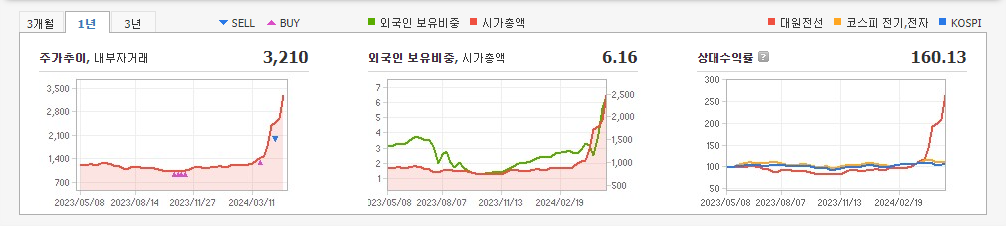 1. 대원전선 등락률: +29.91%