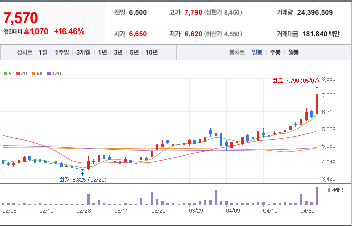 현재가: 7,570, 어제대비:+상승