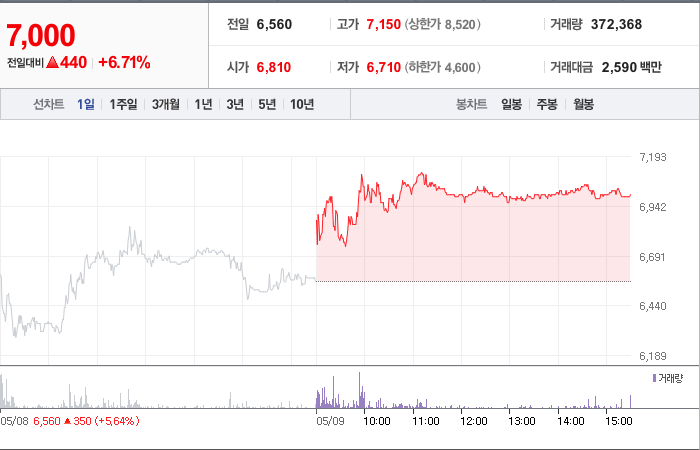 현재가: 7,000, 어제대비:+상승