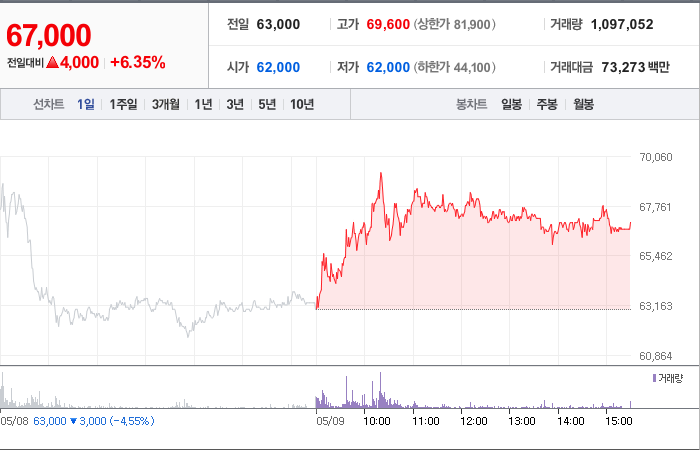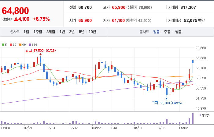현재가: 64,800, 어제대비:+상승
