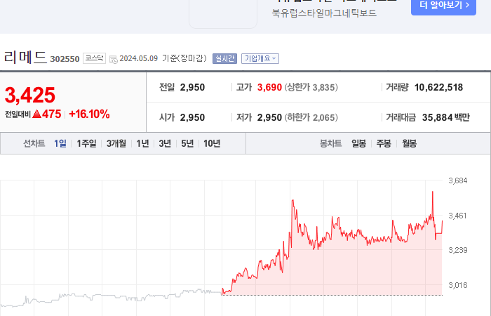 20. 리메드 등락률: +16.10%