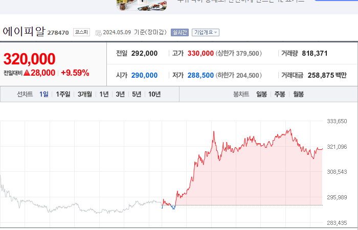 4. 에이피알 등락률: +9.59%