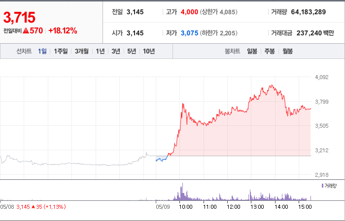 4,100시총: 5조 5,698억원, 거래량:817,307, 거래대금:52,075백만