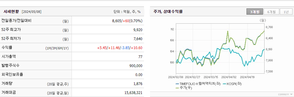 6. TIMEFOLIO K컬처액티브 등락률: +7.26%
