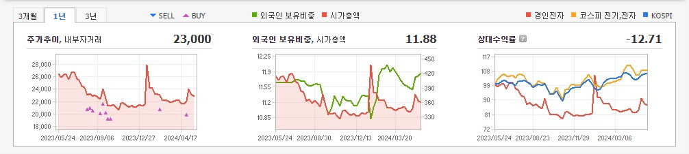 2023년 12월 전년동기 대비 연결기준 매출액은 1.2% 감소, 영업이익 흑자전환, 당기순손실은 165% 증가. 매출원가 하락 및 비용 절감 노력을 통해 영업이익 흑자전환하였으나, 파생상품 평가 및 투자 부문의 손실 반영으로 당기순손실이 증가함. 새롭게 진출한 신사업인 리튬염 유통의 매출 발생이 4분기부터 인식되었으며, 리튬염 생산을 가속화하기 위한 글로벌 업체 인수에 돌입할 예정임.