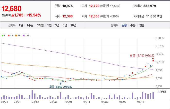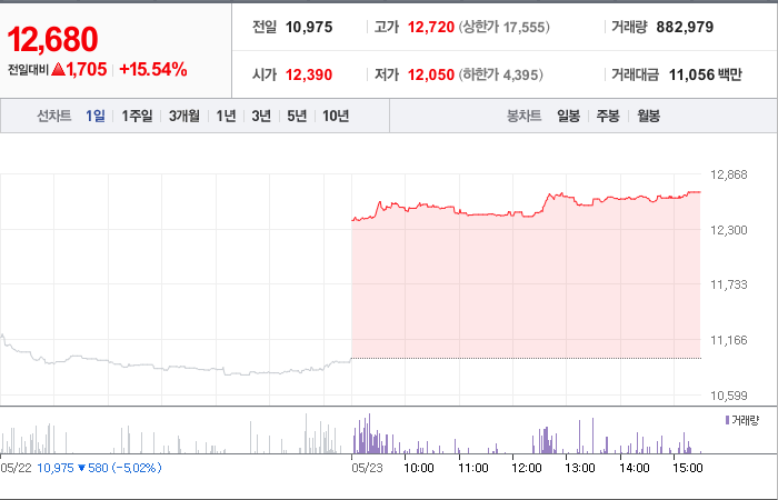 현재가: 12,680, 어제대비:+상승