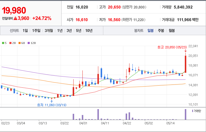 현재가: 19,980, 어제대비:+상승