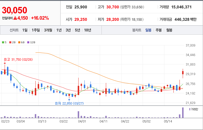 현재가: 30,050, 어제대비:+상승