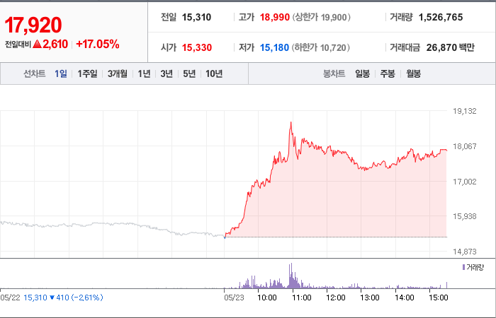 현재가: 17,920, 어제대비:+상승