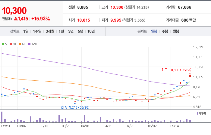 현재가: 10,300, 어제대비:+상승