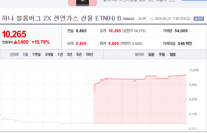 9. 신한 블룸버그 2X 천연가스 선물 ETN 등락률: +15.54%