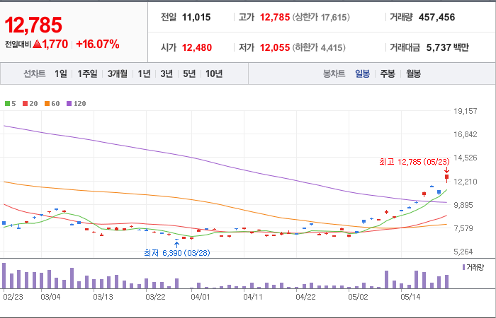 현재가: 12,785, 어제대비:+상승