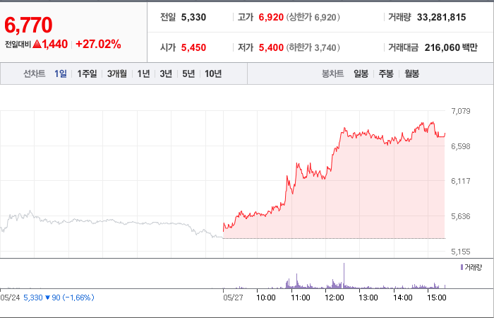 현재가: 6,770, 어제대비:+상승