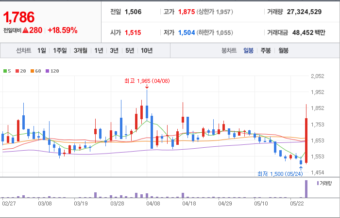 현재가: 1,786, 어제대비:+상승
