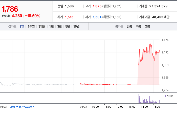 18,500시총: 5조 1,349억원, 거래량:2,419,331, 거래대금:318,001백만