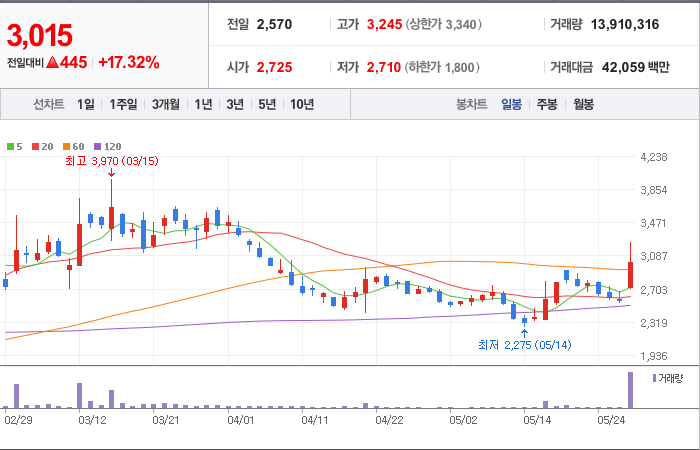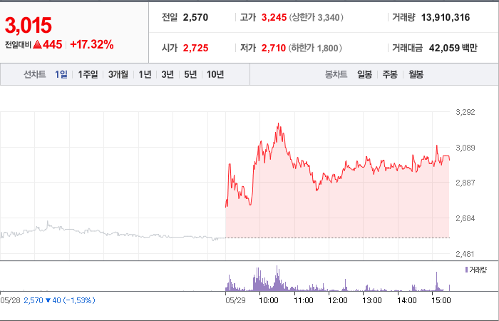 현재가: 3,015, 어제대비:+상승