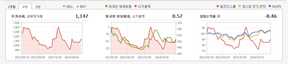 2023년 12월 전년동기 대비 연결기준 매출액은 10.9% 증가, 영업이익은 86.1% 감소, 당기순이익 적자전환. 전지박 매출이 증가하면서, 매출이 10%가 까이 증가했지만, 재고자산 증가에 따른 원가율 상승으로 영업이익이 80%가까이 감소함. 이차전지 시장이 요구하는 차세대 배터리 소재 개발(고체전해질, LFP 양극활물질, 실리콘 음극활물질)로 미래 가치를 높이는 R&D 역량을 강화하는데 집중하고 있음.