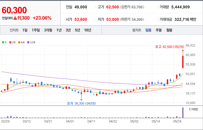 현재가: 60,300, 어제대비:+상승